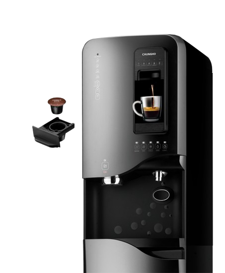 Không chỉ dừng lại từ những thành tựu đã có, ChungHo luôn nghiên cứu và phát triển mình để mang đến cho con người những nguồn nước tinh khiết nhất. Bạn có từng nghĩ về một chiếc Máy Lọc Nước có thể pha cà phê? Máy Lọc Nước ChungHo New Whi Caffe 700 GWF-70S9500M là model mới nhất của ChungHo: bạn có thể thưởng thức hương vị cà phê Espresso – Italy cùng Whi Caffe.
