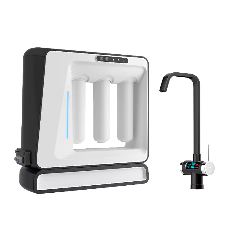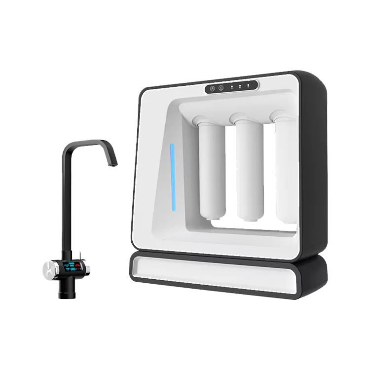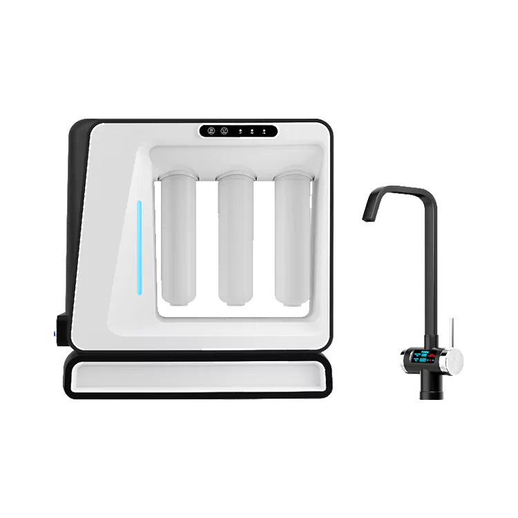 – Lọc nước tinh khiết 3 lõi, 4 bước lọc, tích hợp vòi led điện tử hiển thị thời gian thay thế lõi lọc
